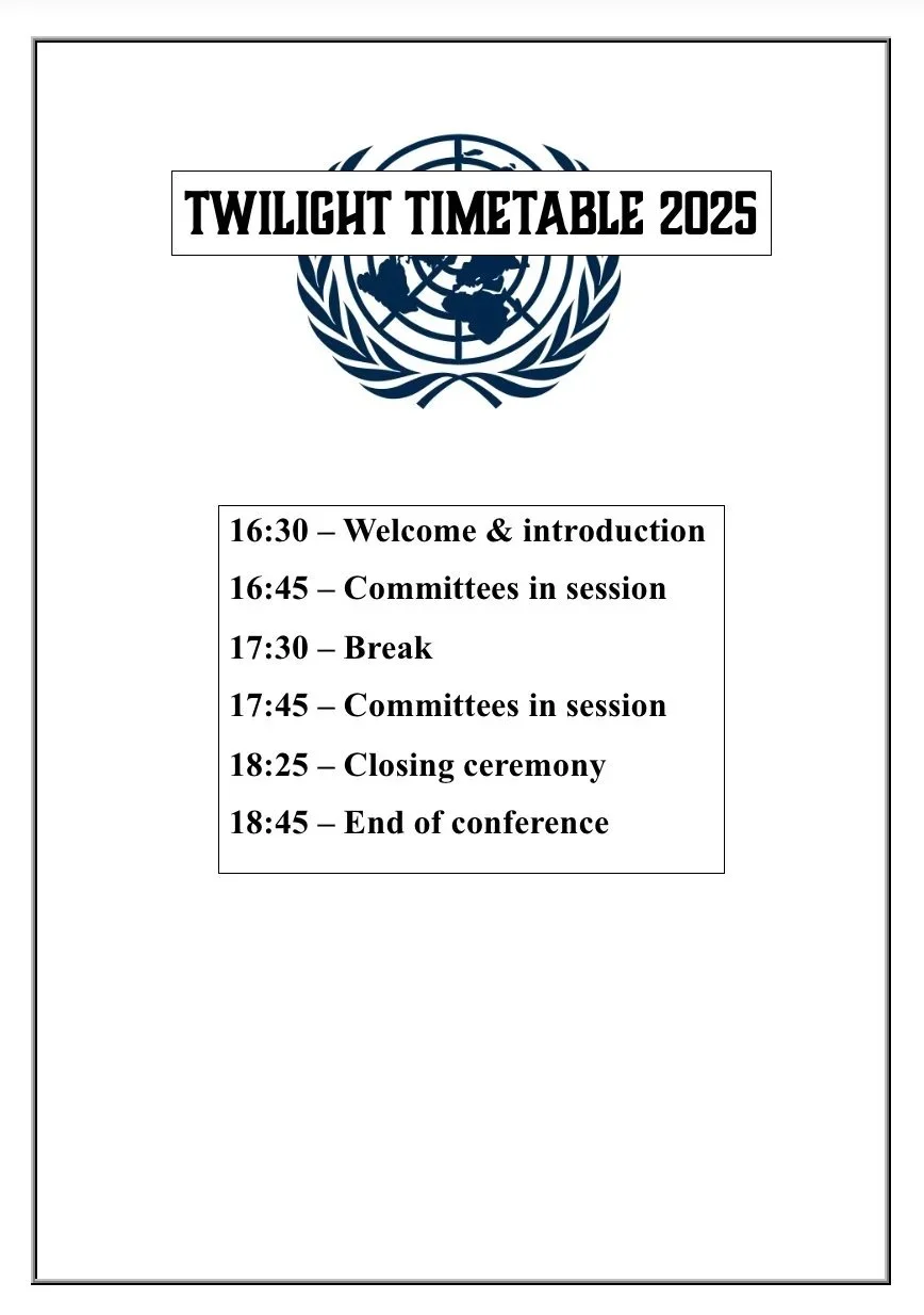 TWILIGHT TIMETABLE 2026 IS AS FOLLOWS: